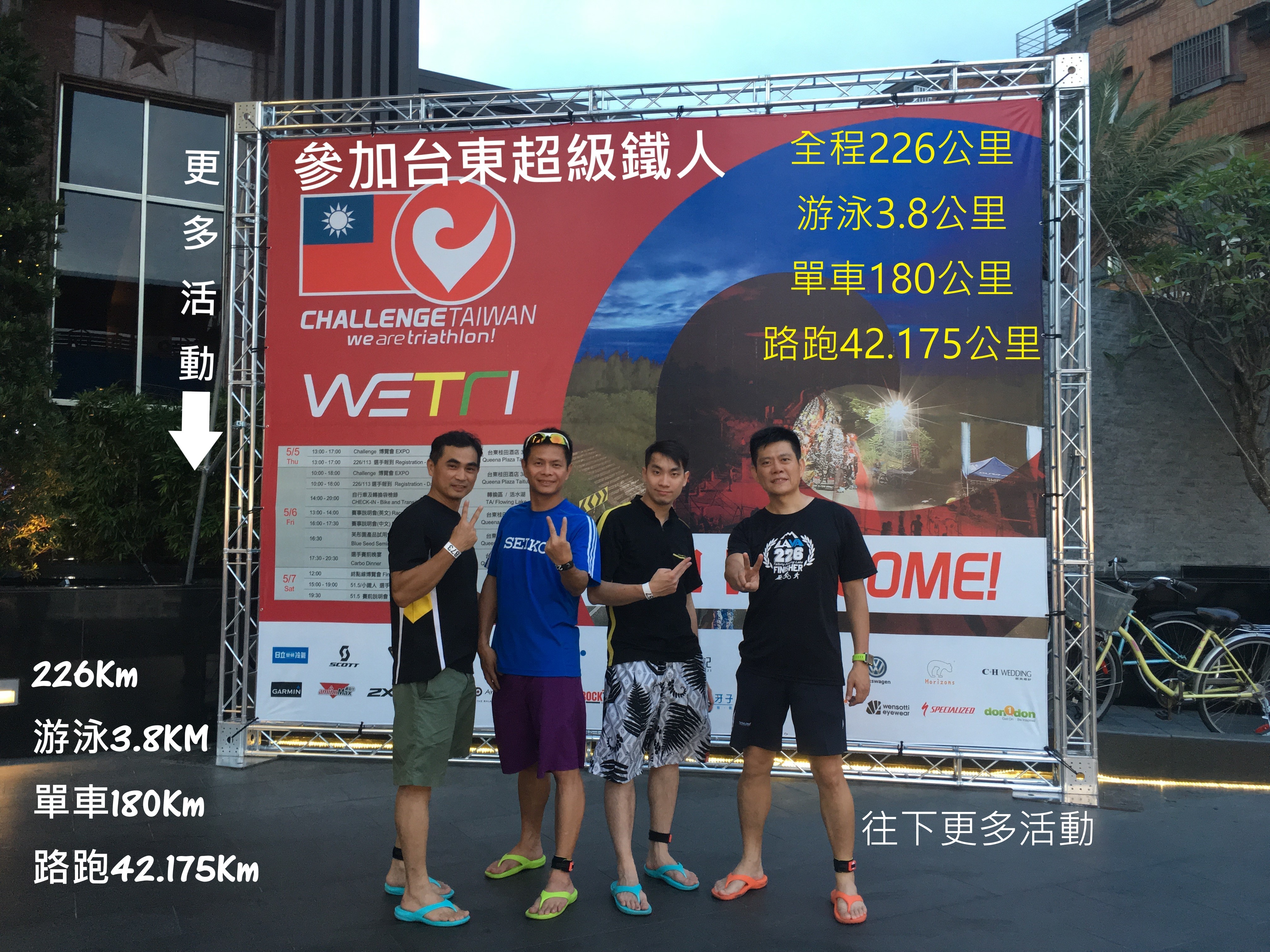 參加台東超級鐵人226公里,游泳3.8公里,單車180公里,路跑42.195公里